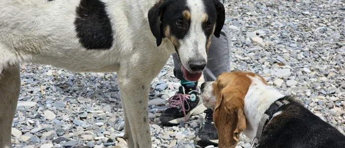 dat grote slungelige uiterlijk gaat een zeer zachte lieve hond schuil.